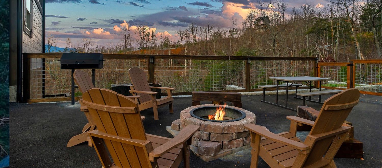 ✔ Outdoor Fire Pit, Adirondack Chairs + Picnic Table